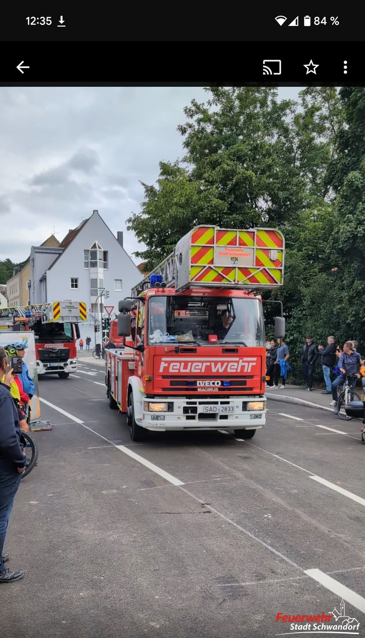 Ausfahrt unserer Drehleitern Am Mittwoch waren wir zur Brückeneröffnung eingeladen, um mit unseren vier Fahrzeugen über die neu gebauten Brücken zu fahren.