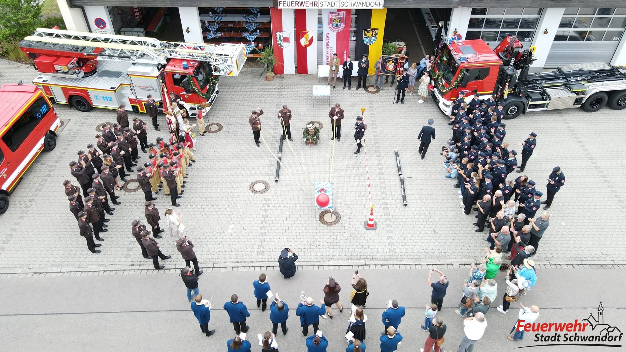 Vergangenen Samstag segnete Pfarrer Markus Meier unsere beiden neuen Fahrzeuge – die Drehleiter und das Wechselladerfahrzeug II.