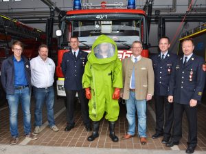 Am Dienstag, den 15.09.2015 wurde durch die Fa. MSA Auer insgesamt 6 neue Chemiekalienschutzanzüge übergeben. Diese Neubeschaffung war notwendig geworden, da die bisherigen aufgrund ihres