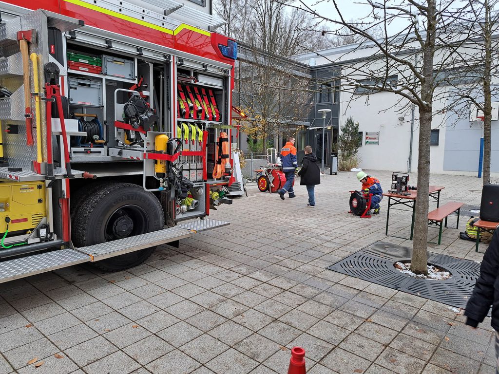 Am Donnerstag (30.11.2023) waren wir zu Gast an der Konrad Max Kunz Realschule. Dort stellten wir unsere Tätigkeit als Jugendfeuerwehr vor. Mit unserem Löschgruppenfahrzeug und der Drehleiter gaben wir einen Einblick in die Aufgaben der Feuerwehr. Neben der Fahrzeugschau durften die Jugendlichen auch selbst an einem Feuertrainer den richtigen Umgang mit Feuerlöschern üben. Das Interesse der 25 Schüler war sehr groß. Vielen Dank für die Einladung, vielleicht haben wir ja den ein oder anderen für das Hobby Feuerwehr begeistern können.