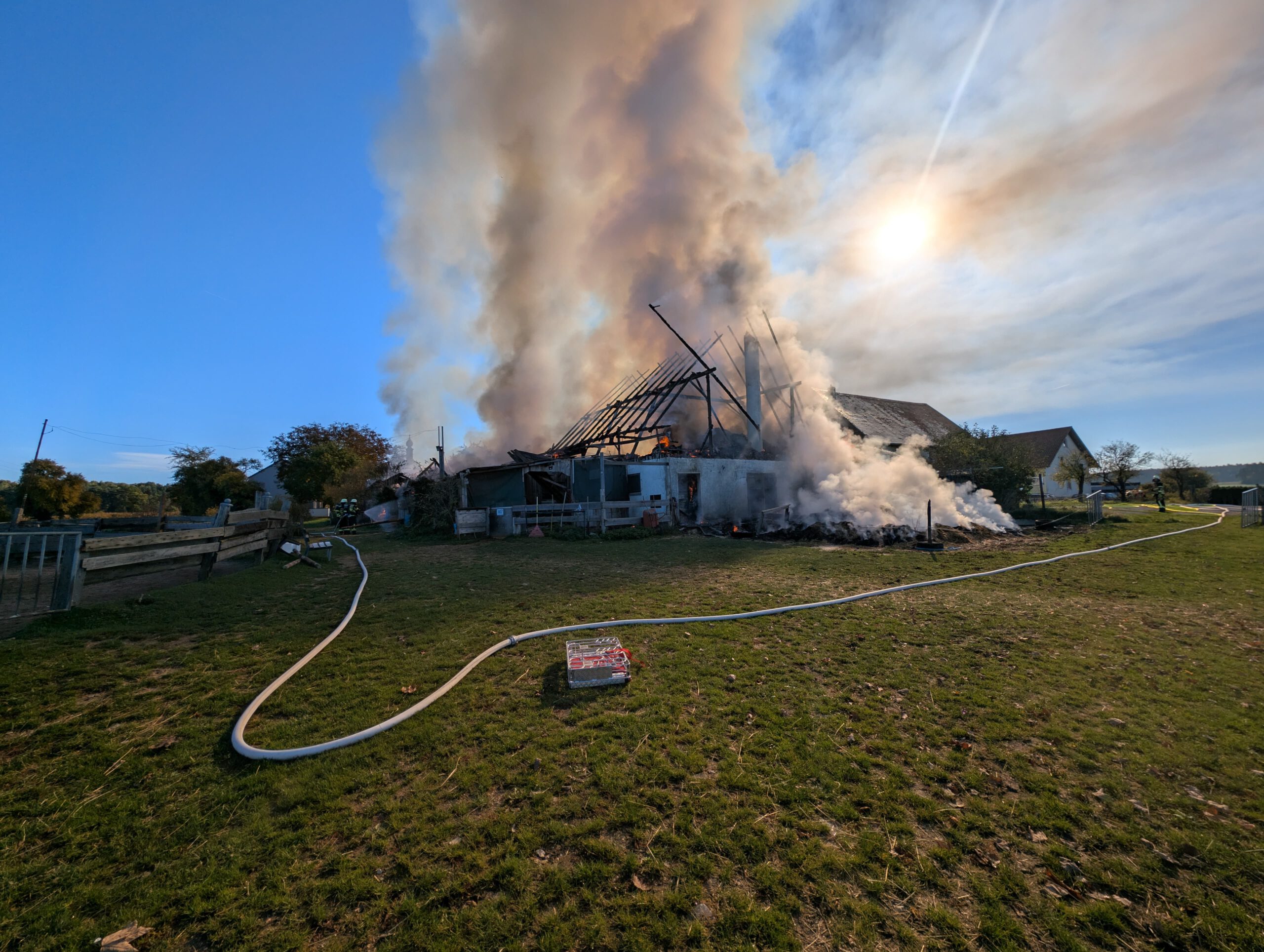 | Einsatzbericht | Bei der Alarmierung über die ILS hieß es “ Brand landwirtschaftliches Anwesen „. Beim Eintreffen an der Einsatzstelle brannten mehrerer Gebäude eines landwirtschaftlichen Anwesens in denen Landmaschinen untergestellt waren. Unsere Aufgabe bestand darin die eingesetzten Feuerwehren mit Löschwasser im Pendelverkehr zu versorgen. Nach gut 2 Stunden konnten wir die Einsatzstelle wieder verlassen. Die Nachlöscharbeiten zogen sich noch bis zum nächsten Tag für die zuständigen Feuerwehren hin. Polizei, Rettungsdienst, Notarzt und THW waren ebenfalls vor Ort.