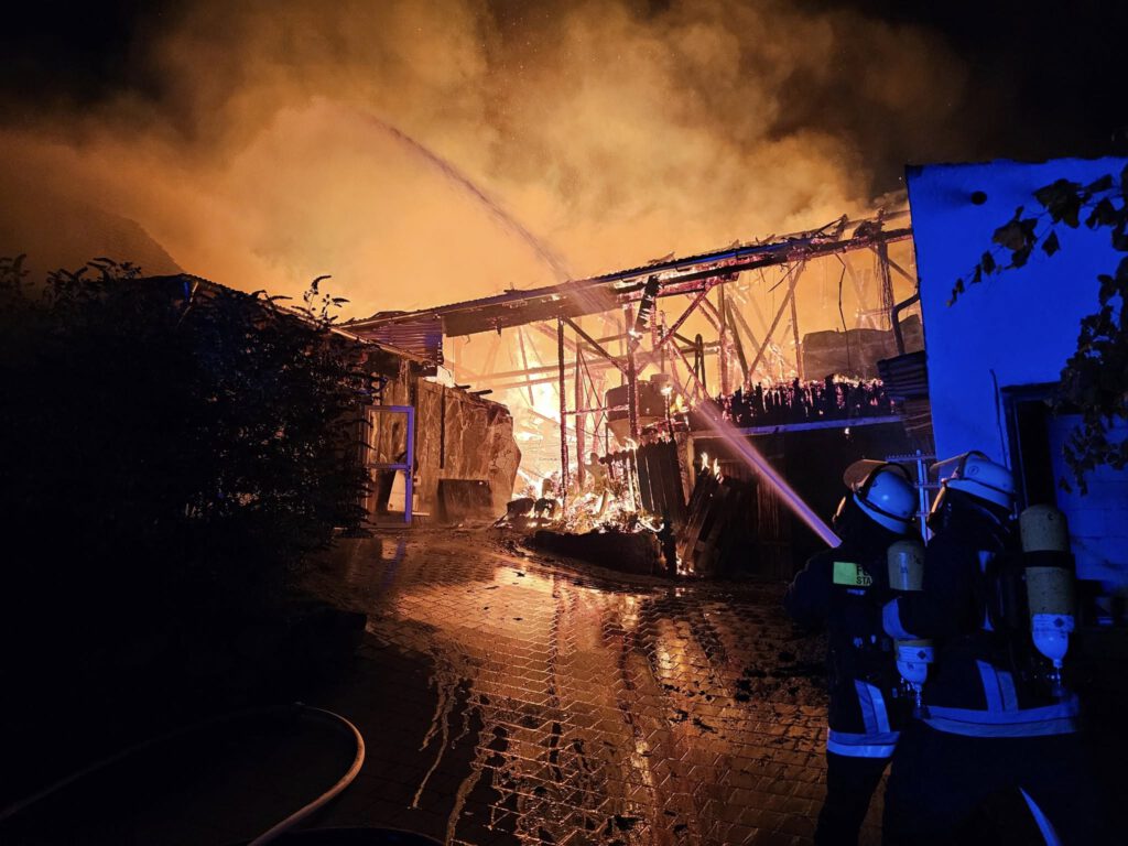 | Einsatzbericht | Bei der Alarmierung über die ILS hieß es “ Bauernhofbrand „. Wir wurden alarmiert um die bereits im Einsatz befindlichen Einsatzkräfte beim Brand eines landwirtschaftlichen Anwesens mit dem SW 2000 ( Schlauchleitung ) und dem TLF 24/48 ( Pendelverkehr ) zu unterstützen. Nach gut 5 Stunden wurden die Feuerwehren durch die Einsatzleitung reduziert und wir herausgelöst, so das wir die Einsatzörtlichkeit wieder verlassen konnten nachdem wir die Schlauchleitung ( 1100 m ) zurückgebaut hatten. Der Einsatz selbst dauerte für die weiter im Einsatz befindlichen Einsatzkräfte noch bis im den Nachmittag hinein. Polizei, Rettungsdienst, Notarzt, THW, Energieversorger und die Stadt Nittenau waren ebenfalls vor Ort.