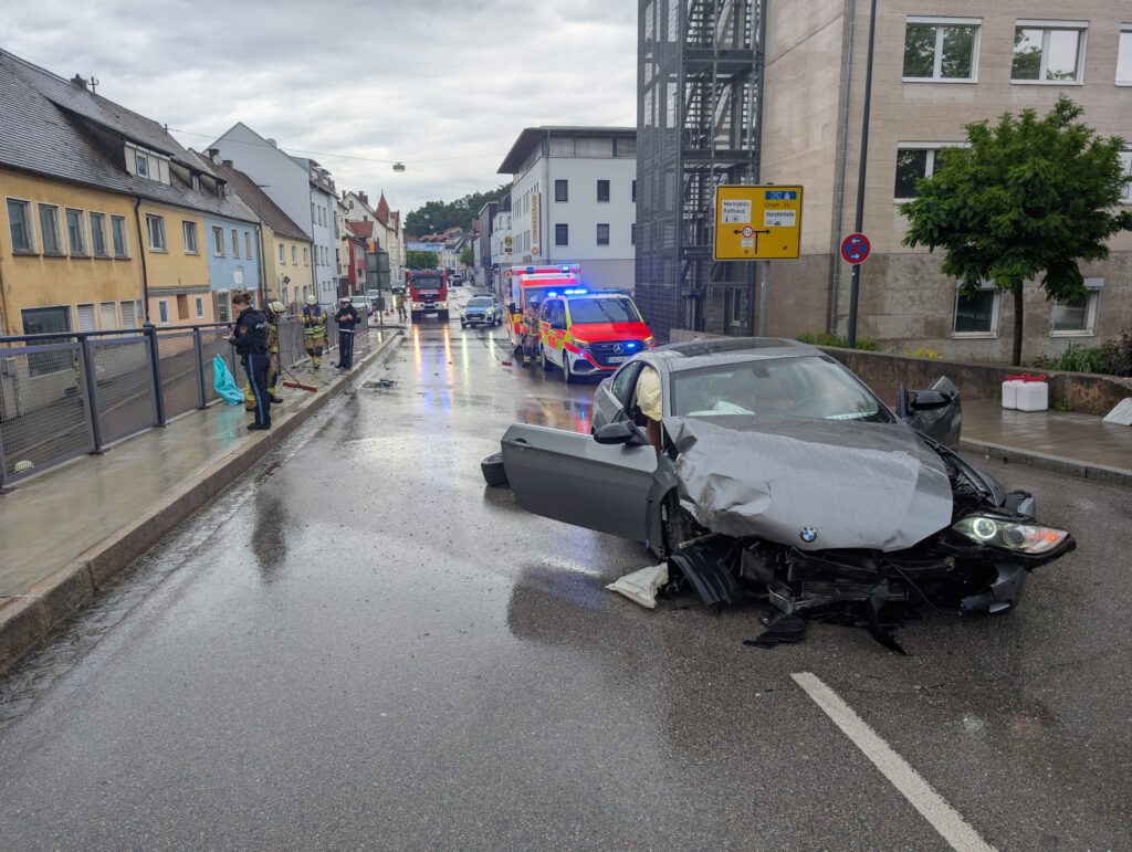 | Einsatzbericht | Bei der Alarmierung über die ILS hieß es “ Verkehrsunfall „. Beim Eintreffen an der Einsatzstelle war ein Pkw alleinbeteiligt gegen den Bordstein und das Brückengeländer gefahren, kam anschließend nicht mehr Fahrtüchtig mitten auf der Straße / Brücke zum stehen. Unsere Aufgabe war es, die Verletzten bis zum Eintreffen Notarzt / Rettungsdienst zu versorgen / betreuen, die Straße komplett für den Verkehr zu sperren und nachdem der Unfall aufgenommen und der Pkw abgeschleppt war die Straße zu säubern. Nachdem der Straßenlastträger das defekte Brückengeländer abgesichert hatte, konnten wir die Einsatzstelle wieder verlassen. Polizei, Notarzt und Rettungsdienst waren ebenfalls vor Ort.