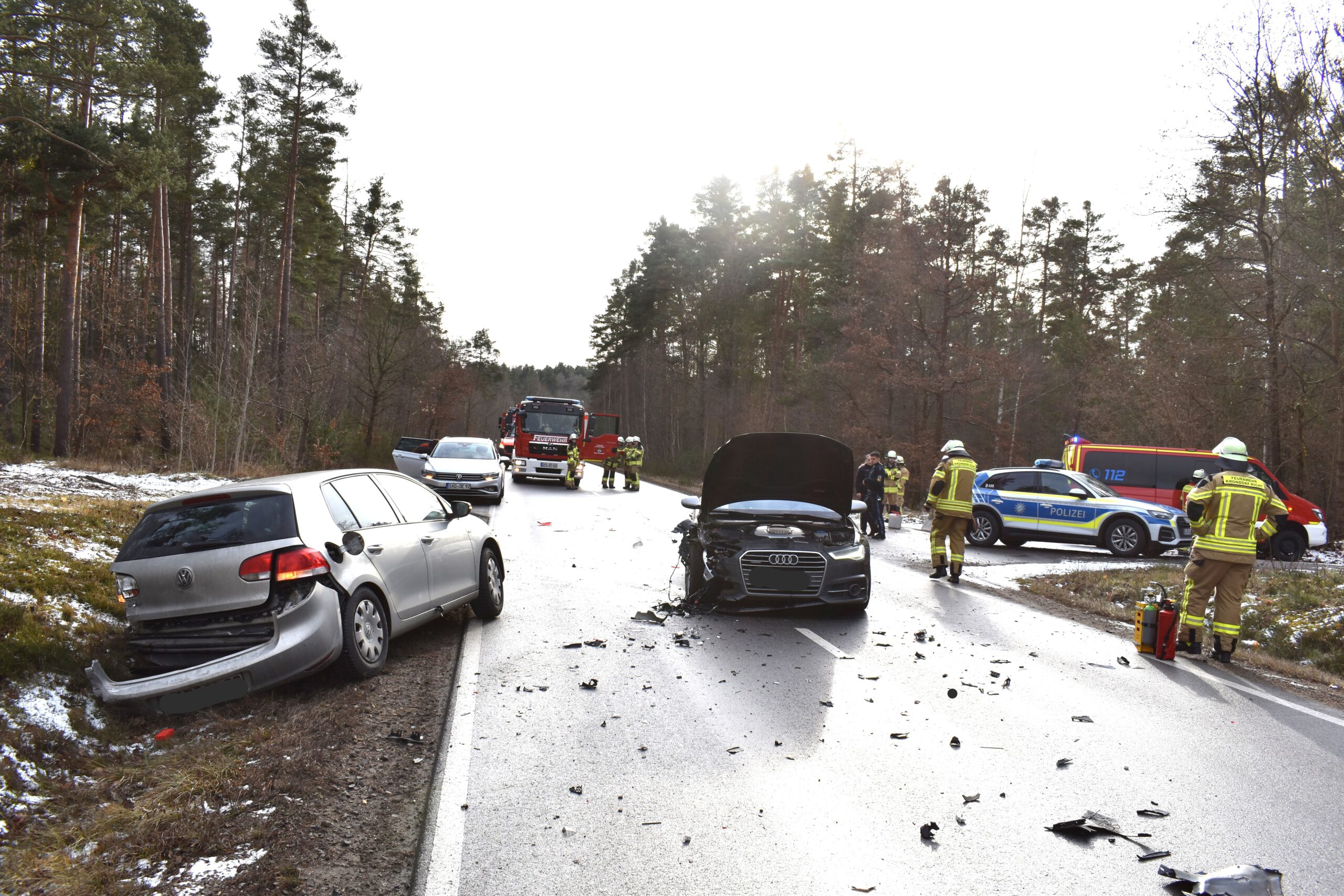 Einsatzbericht Bei der Alarmierung über die ILS hieß es “ Verkehrsunfall „. Beim Eintreffen an der Einsatzstelle waren 2 Pkw´s kollidiert. Die Verletzten wurden bereits versorgt, so das unsere Aufgabe darin bestand mit den weiteren alarmierten Feuerwehren die Straße für den Verkehr zu sperren, auslaufende Betriebsstoffe zu binden und nachdem die Pkw´s geborgen waren, die Straße zu säubern. Als der Straßenlastträger eine Beschilderung aufgestellt hatte, konnten wir die Einsatzstelle wieder verlassen. Polizei und Rettungsdienst waren ebenfalls vor Ort.